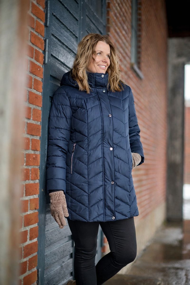 Lang luksus dynejakke fra danske Danwear som er en favorit i de kolde vintermåneder. Modellen sidder behagelig let og lukker vinden ude. Den er designet i en super flot, feminin pasform så den nemt kan bruges som en pæn hverdagsjakke. Damejakken har en praktisk lynlås, låsbare lommer, en inderlomme og en høj krave med aftagelig hætte. Design, komfort og praktik forenes i den lækre vind- og vandafvisende skandinaviske model. 100% Polyester