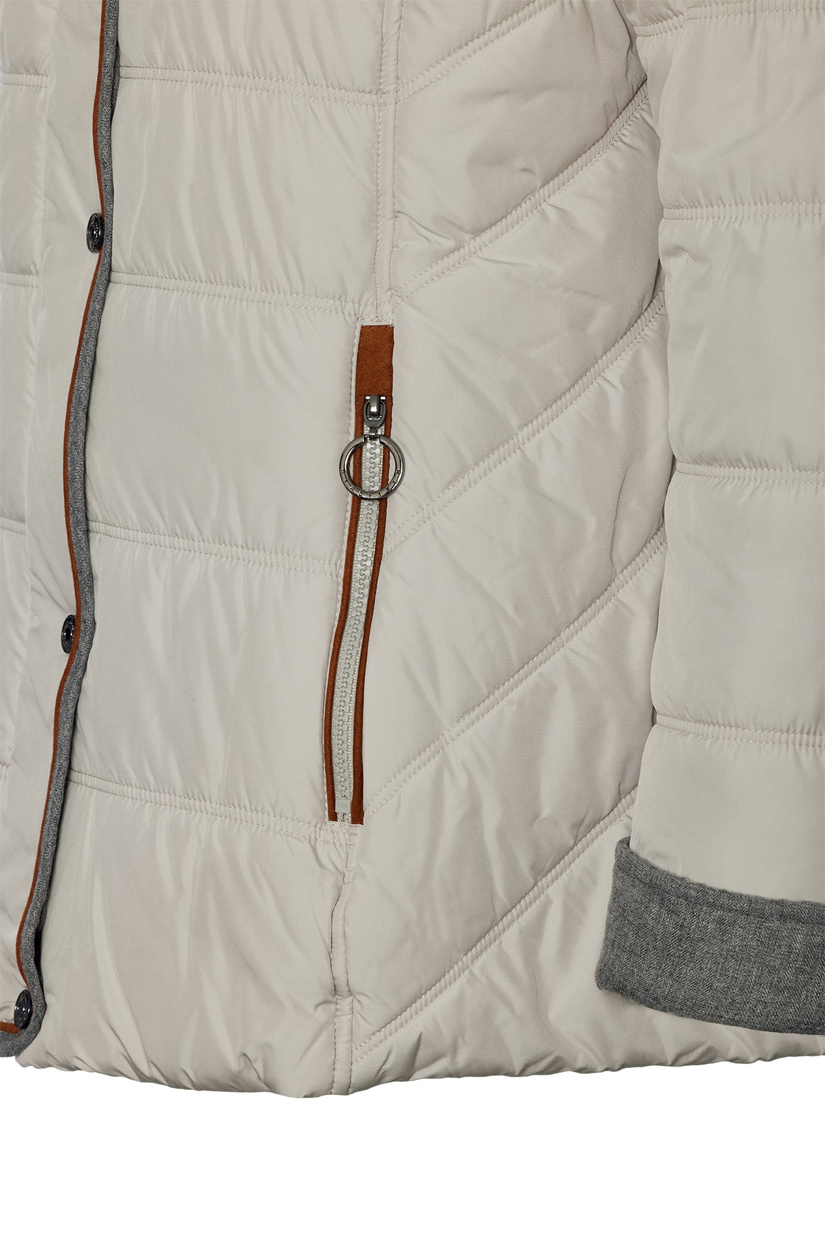 Denne quiltede damejakke fra Danwear er dejlig at bevæge sig i og overbeviser samtidigt med skandinavisk design. Høj kvalitet forenes med et langt snit, trykknaplukning og lynlås, der kan lukkes højt op i halsen. Kraven og den justerbare, aftagelige hætte er foret med lækkert, ekstra blødt stof. Der findes mange eksklusive detaljer som kontrast pipings på kanter og ved lynlåse. Jakkens lommer er med lynlås og fleece i, den er med vindstop i ærmerne, er fremstillet af 100% genanvendt polyester og har en vand og vindafvisende imprægnering. En jakke man ikke kan undvære.